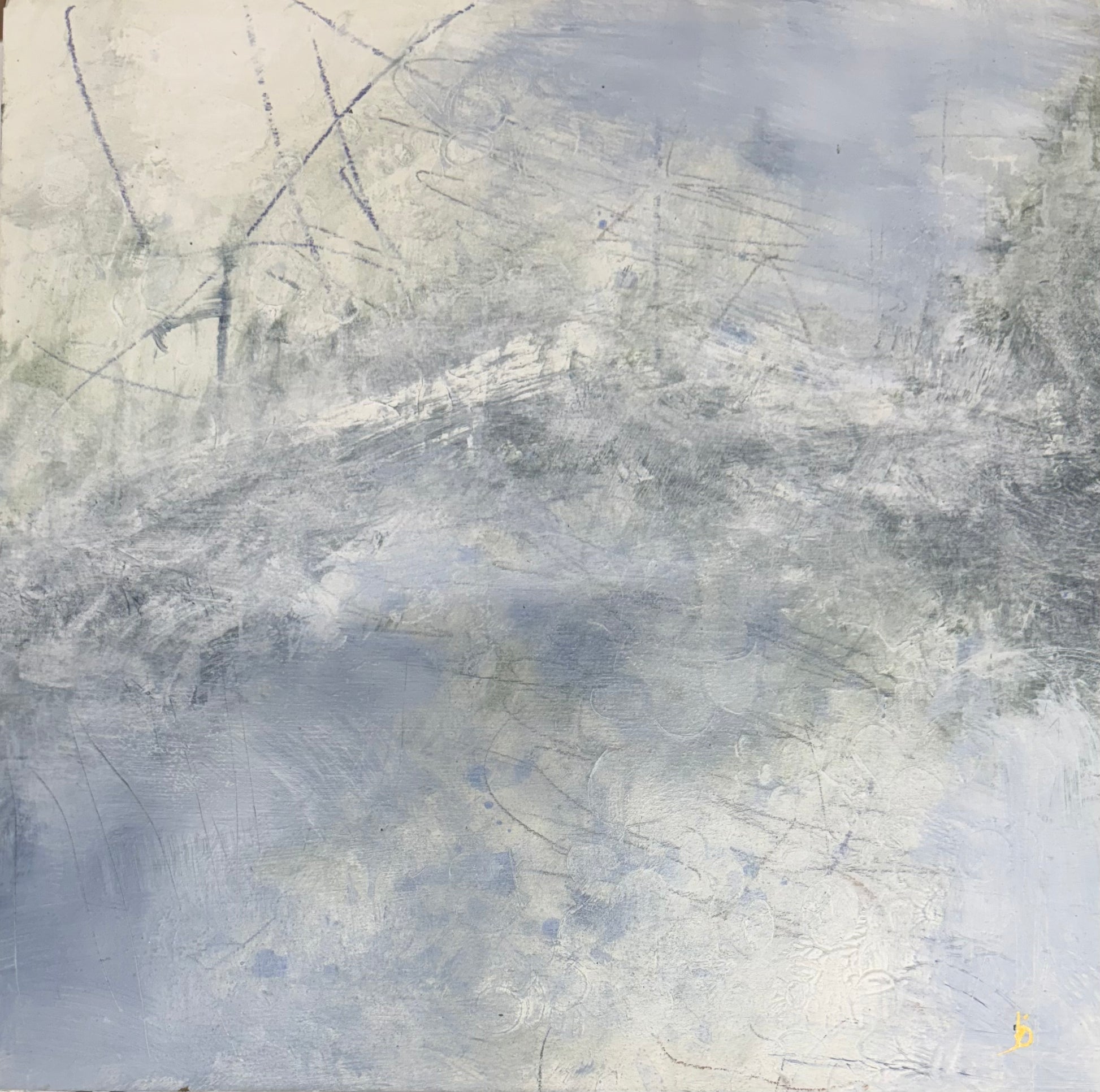 This abstract winter-inspired painting captures a serene, ethereal landscape filled with soft, whispering hues of icy blue, silvery white, and cool gray. Textured layers and gestural marks suggest a snowy terrain brushed by wind and time, evoking the quiet stillness of a frozen morning. Delicate scratches and linear elements emerge like branches etched in frost or tracks across an untouched field, adding a sense of memory and movement beneath the surface calm. The composition draws the viewer into a reflective space, inviting contemplation and stillness. Light appears to diffuse gently across the canvas, lending a dreamlike quality to the scene. This piece speaks to themes of transience, renewal, and the subtle beauty of the natural world at rest. It is ideal for collectors of fine art who are drawn to minimalist landscapes and expressive abstraction. A perfect fit for serene interiors, this painting brings a breath of winter's quiet grace indoors