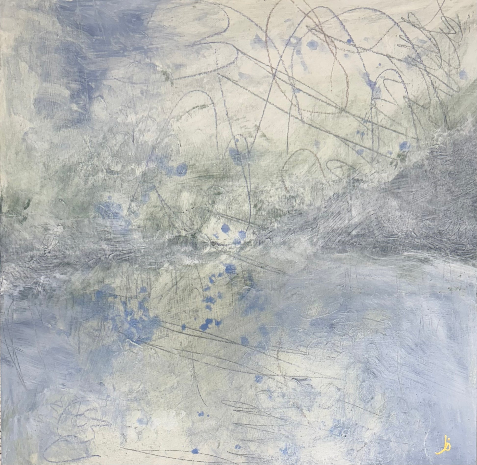 This abstract winter-inspired painting captures a serene, ethereal landscape filled with soft, whispering hues of icy blue, silvery white, and cool gray. Textured layers and gestural marks suggest a snowy terrain brushed by wind and time, evoking the quiet stillness of a frozen morning. Delicate scratches and linear elements emerge like branches etched in frost or tracks across an untouched field, adding a sense of memory and movement beneath the surface calm. The composition draws the viewer into a reflective space, inviting contemplation and stillness. Light appears to diffuse gently across the canvas, lending a dreamlike quality to the scene. This piece speaks to themes of transience, renewal, and the subtle beauty of the natural world at rest. It is ideal for collectors of fine art who are drawn to minimalist landscapes and expressive abstraction. A perfect fit for serene interiors, this painting brings a breath of winter's quiet grace indoors