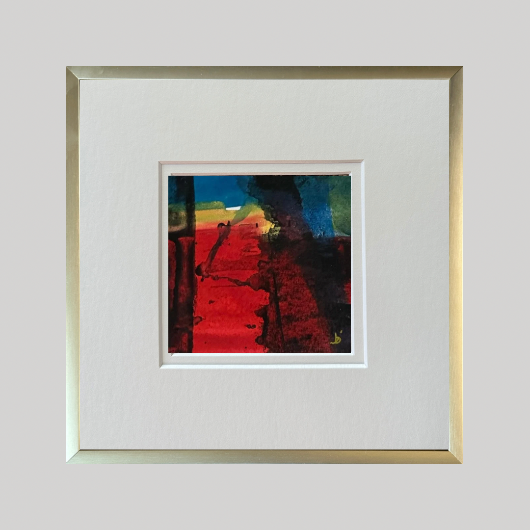Mini Art 91, 2023, Acrylic on paper, 4 x 4 inches, matte 8 x 8 inches, framed 8x8 inches