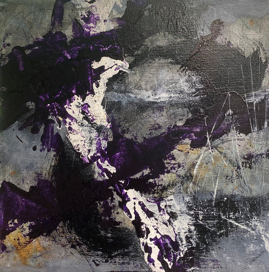 Original art with black, dark purple, white and gray. Hostess gift art, thank you gift...