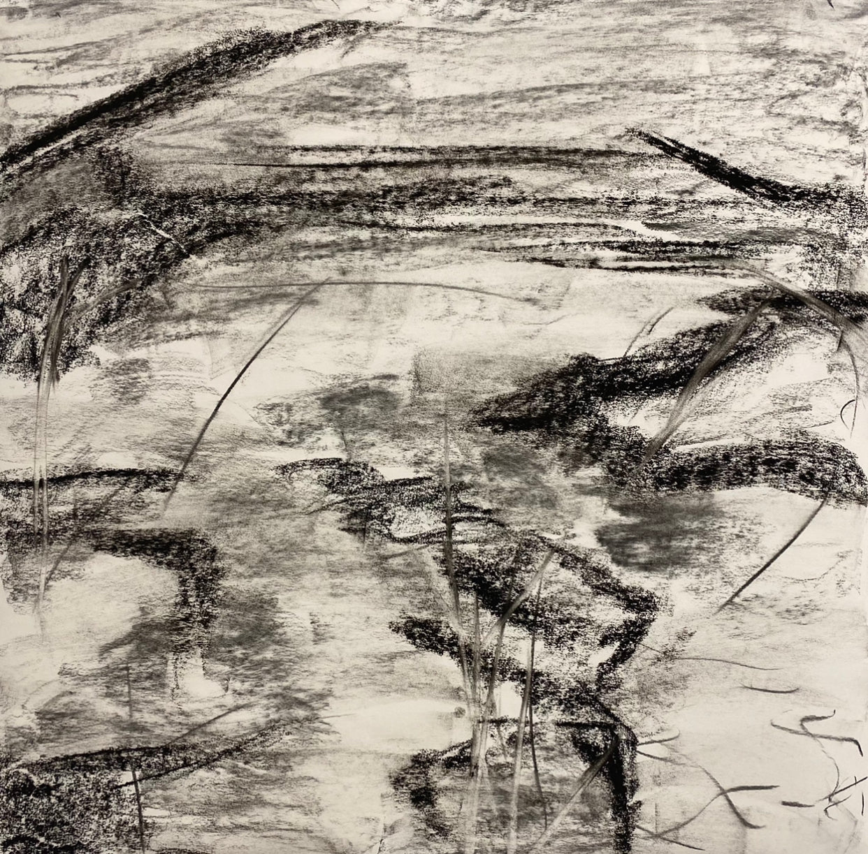LIfe cycle concept drawing, From the Chestatee River portfolio, 2021, Charcoal on paper, 24 x 24 inches.