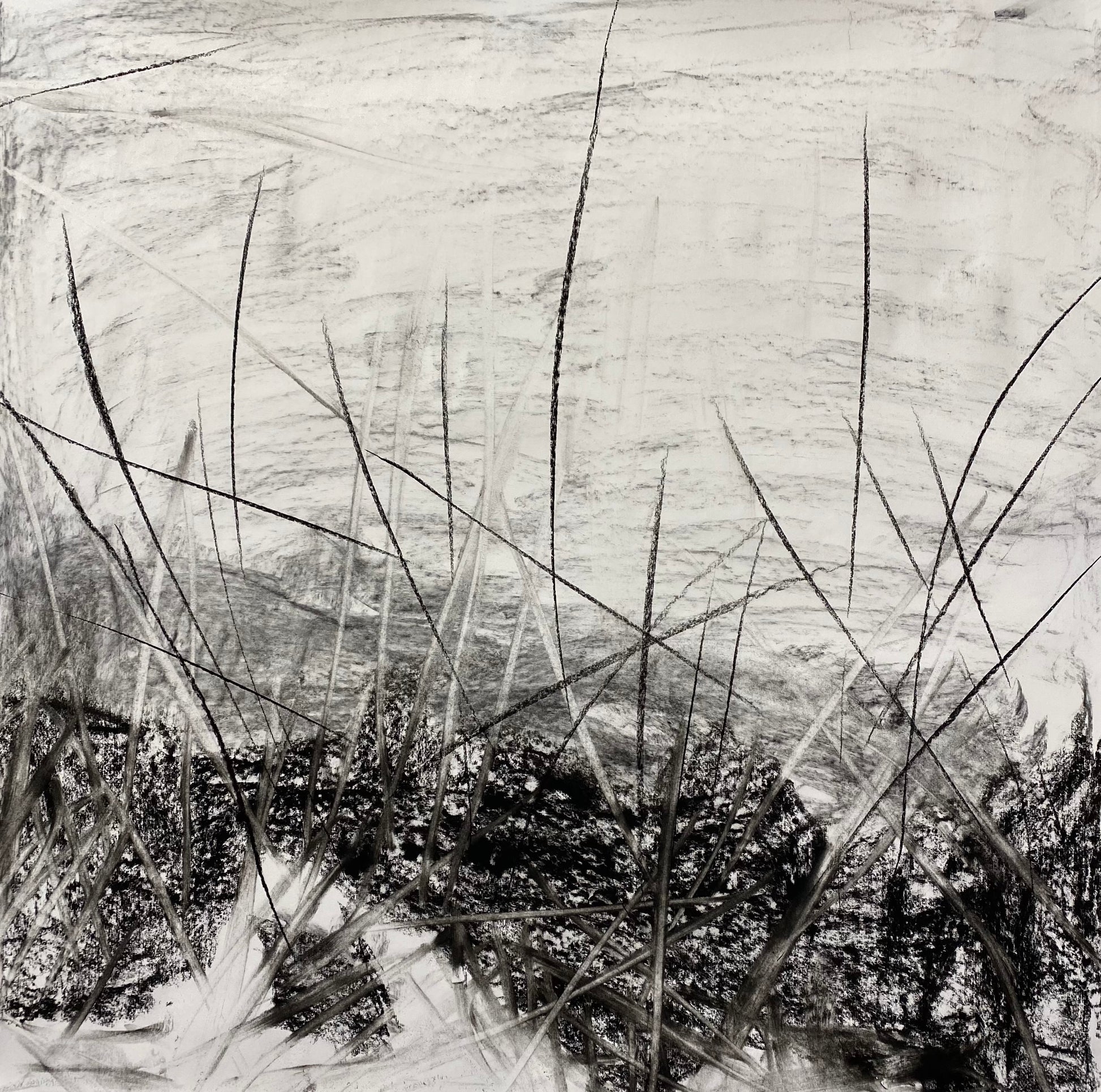 Juanita Bellavance, On the edge concept drawing, From the Chestatee River Perspective, 2021, Charcoal on paper, 24 x 24 inches