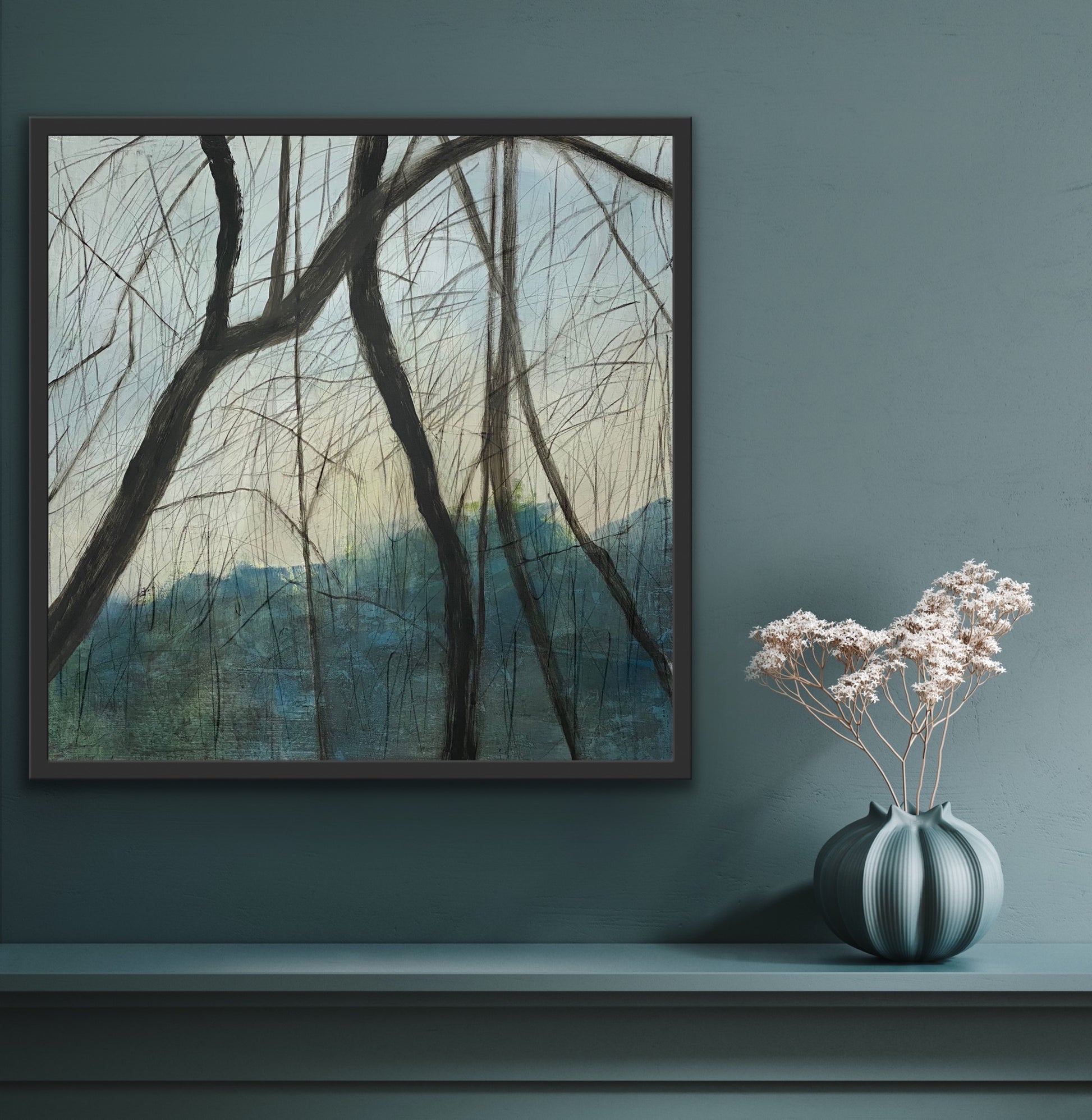 Juanita Bellavance, The setting sun, From the Chestatee River portfolio, 2021, Acrylic and graphite on canvas, 24 x 24 inches