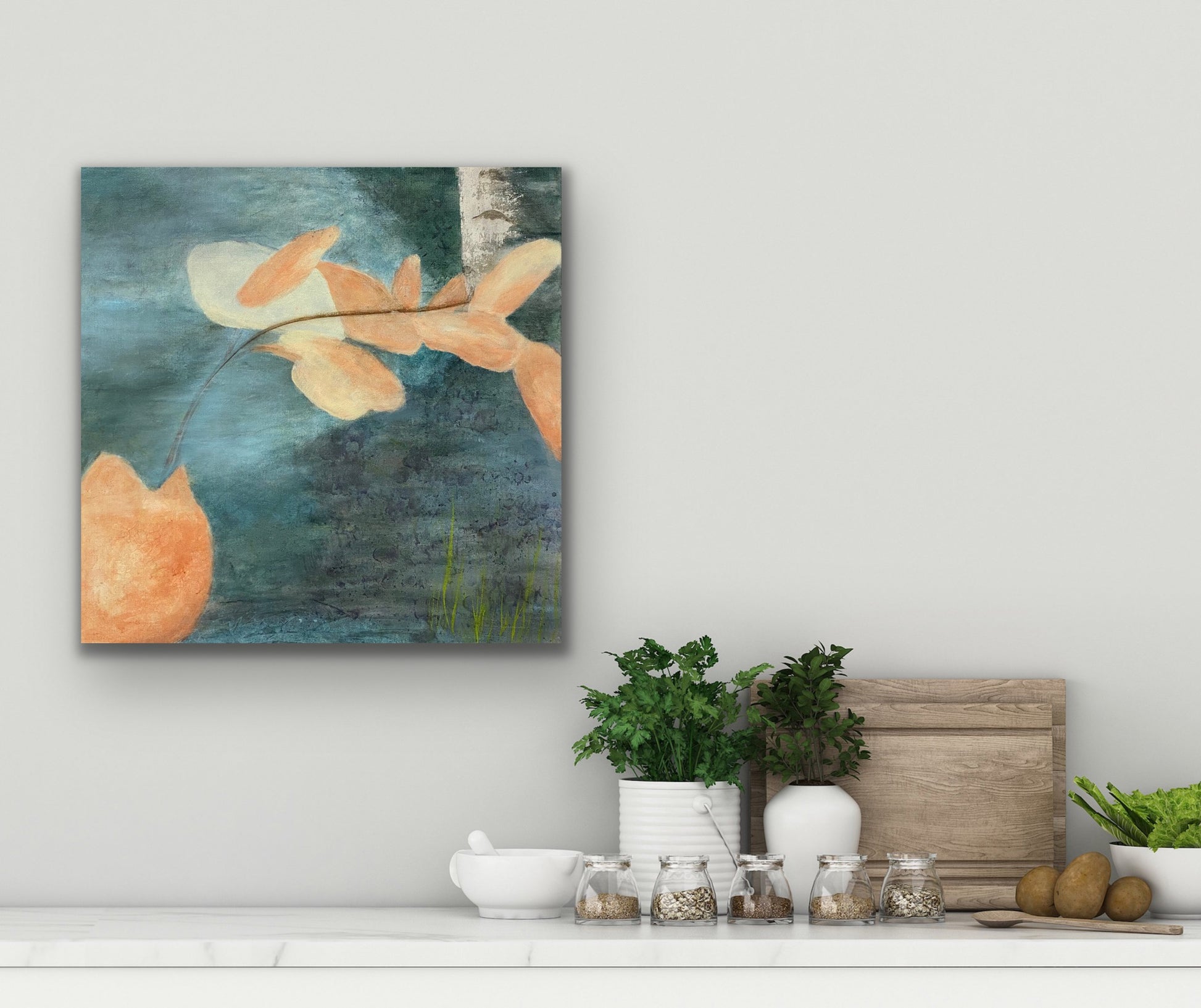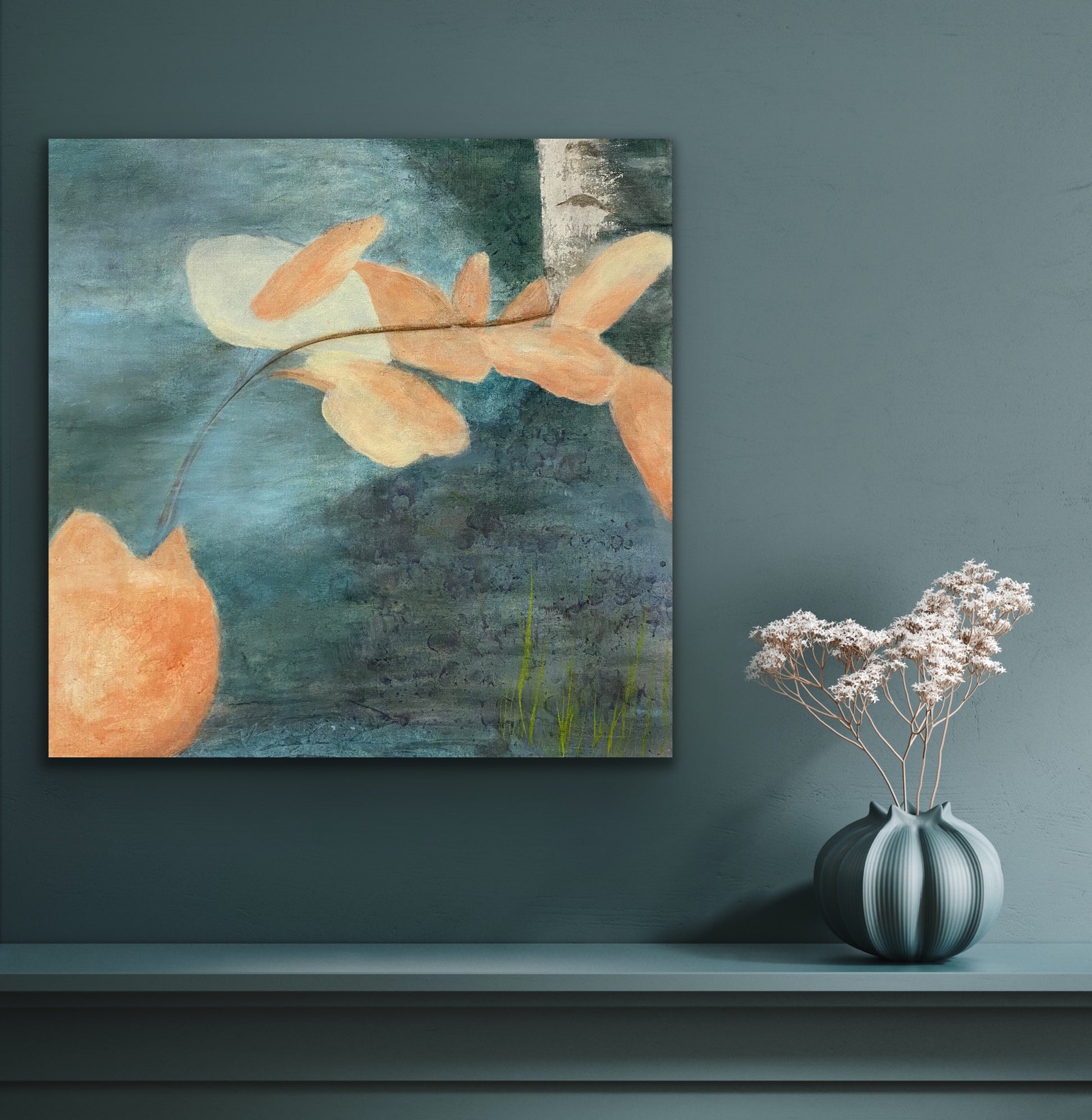 I notice a common thread as to where I often find awe. I was always intrigued with photographs that were of a scene in the distance and had a twig or something thin in the foreground of the picture. Much like a "photobomb." except intended. From the moment I ever held a camera I almost always wanted to have some sort of foliage in the foreground. You can see in this painting that's exactly what I did.