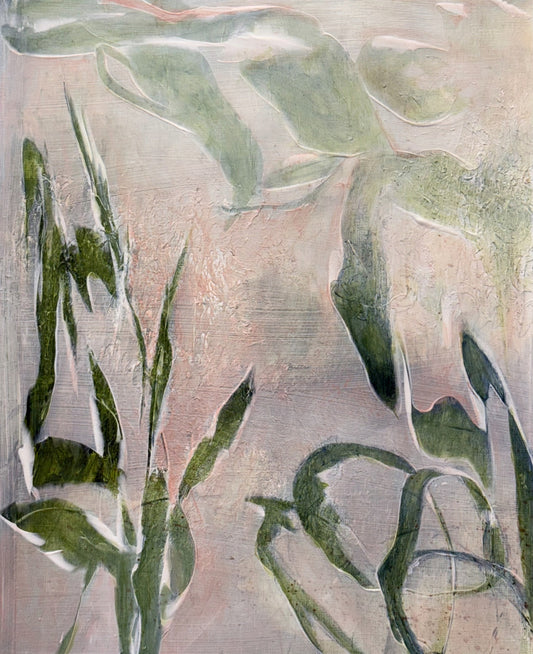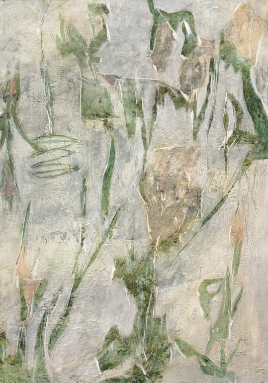 This ethereal abstract painting evokes the delicate interplay of nature and time, where botanical forms...