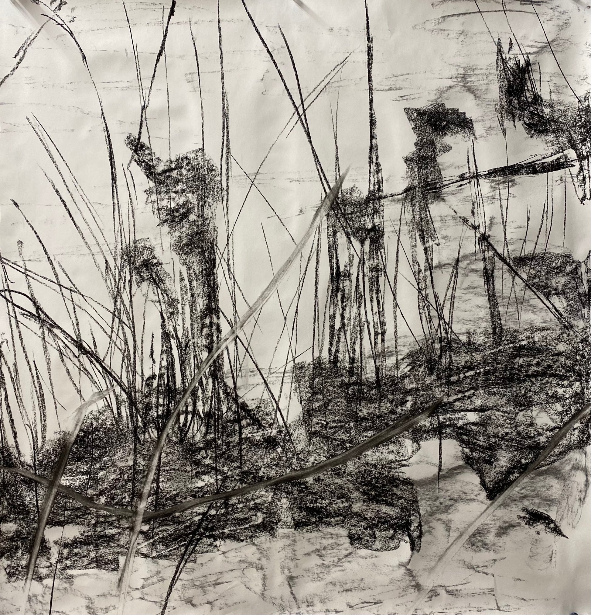 Fullness of life concept drawing, From the Chestatee River Perspective, 2021, Charcoal on paper, 24 x 24 inches