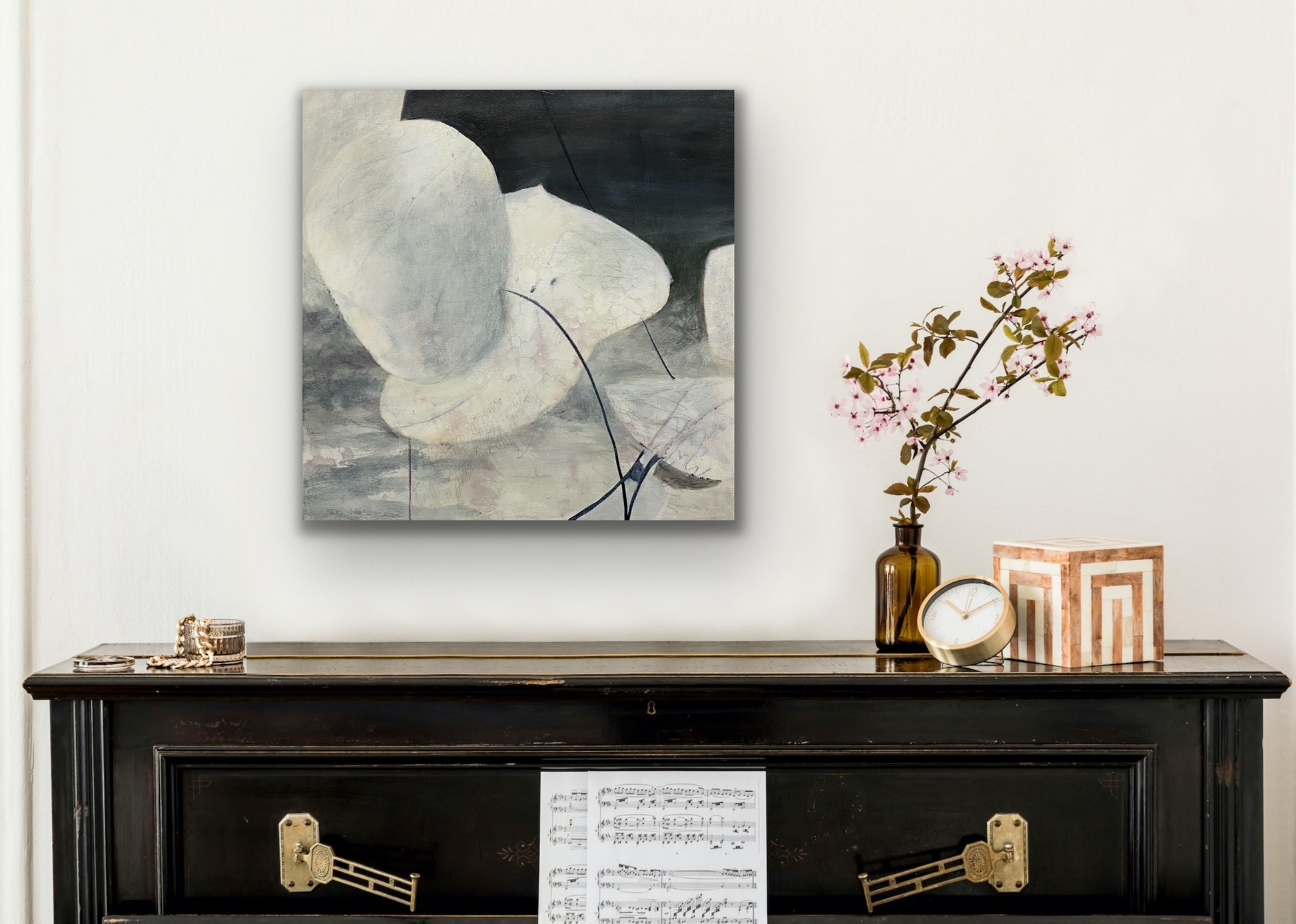 One more time I visit this particular composition. I wanted a black and white painting in the portfolio of variations. I love the formality of black and white. I'm highly drawn to black and white paintings. I love the stark richness they provide.
