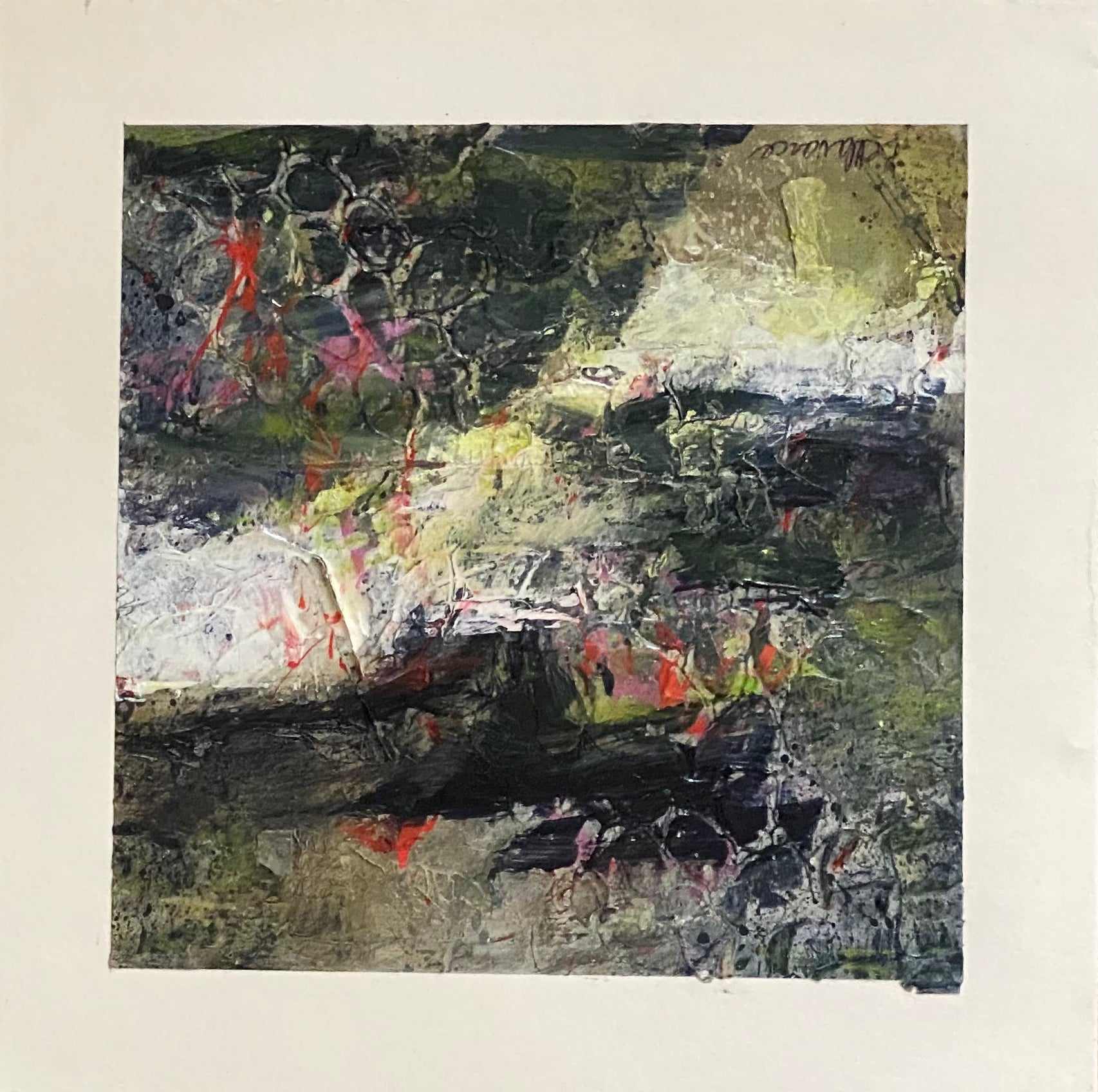 Juanita Bellavance, Rapids 1, 2020, Mixed media on paper, 6 x 6 inches, unframed.