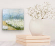 After making so many paintings about the river, I yearned to use more color. The river basically involves blue, green, gray, and brown, and that was pretty much it. I thought adding some flowers along the way would be just the thing. The next spring, I went to a different river, the Toccoa, and discovered very few flowers. The ones I did see were white. Occasionally, there were daffodils and a few purple crocus here and there, but I wanted more.