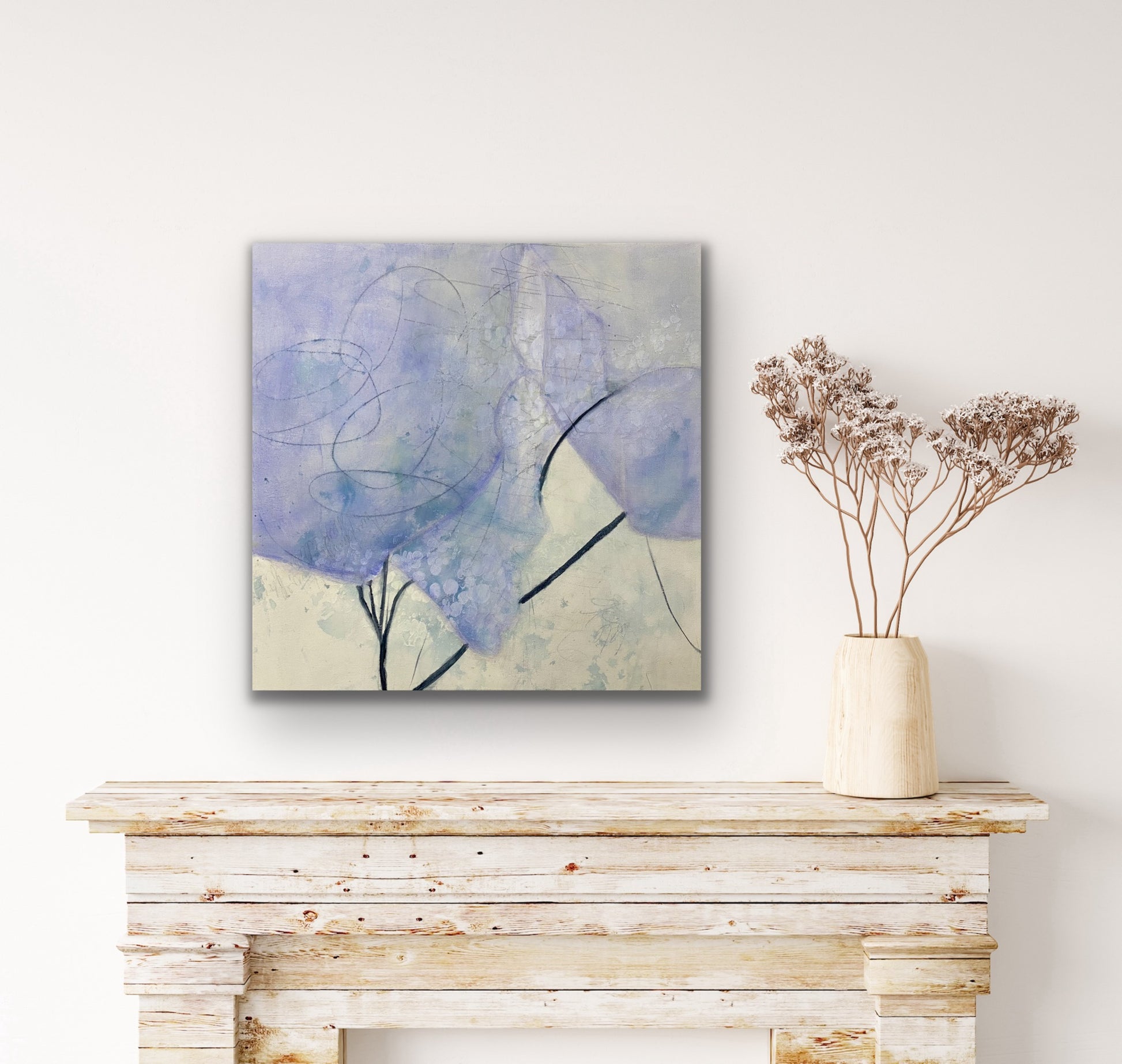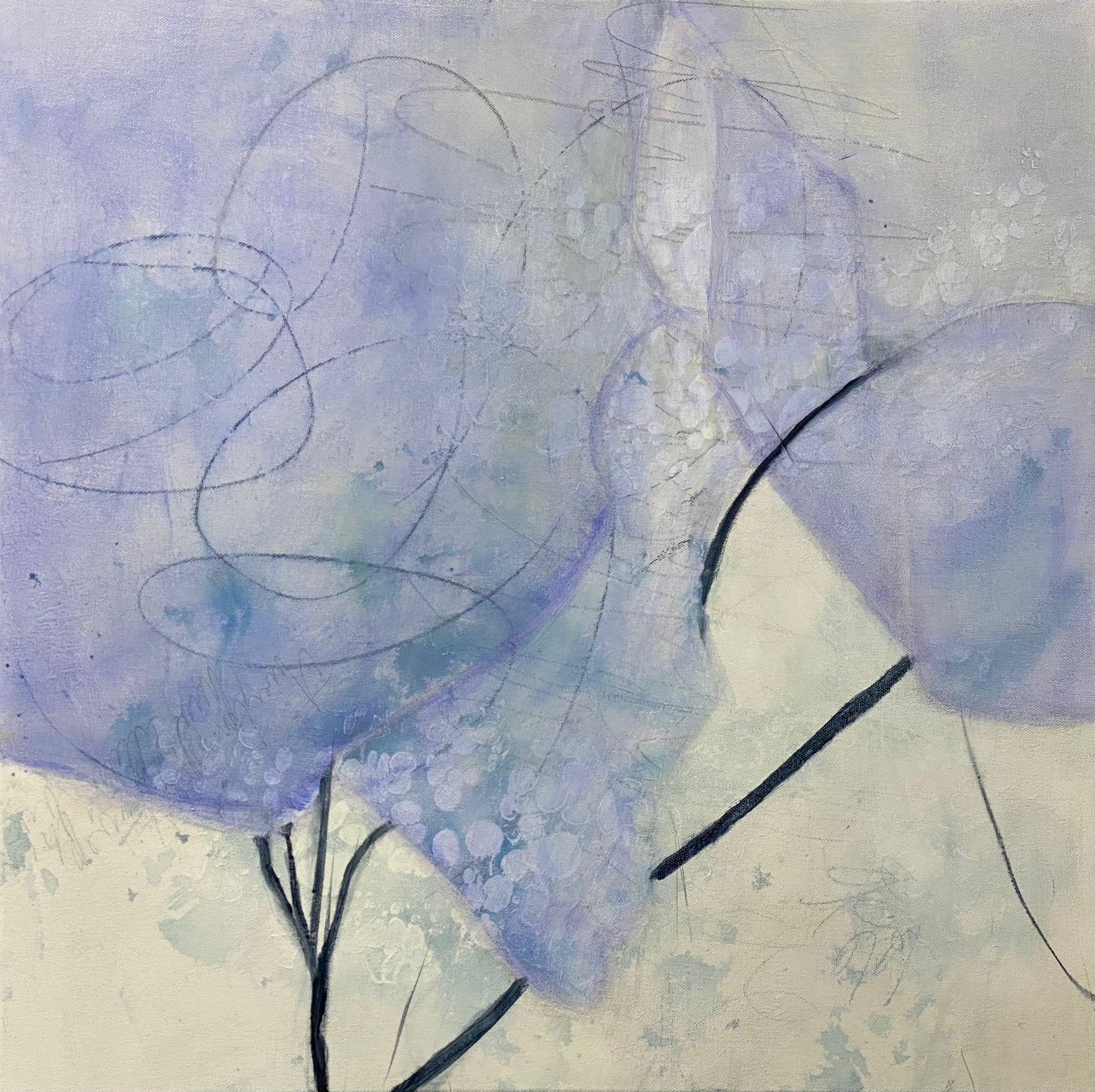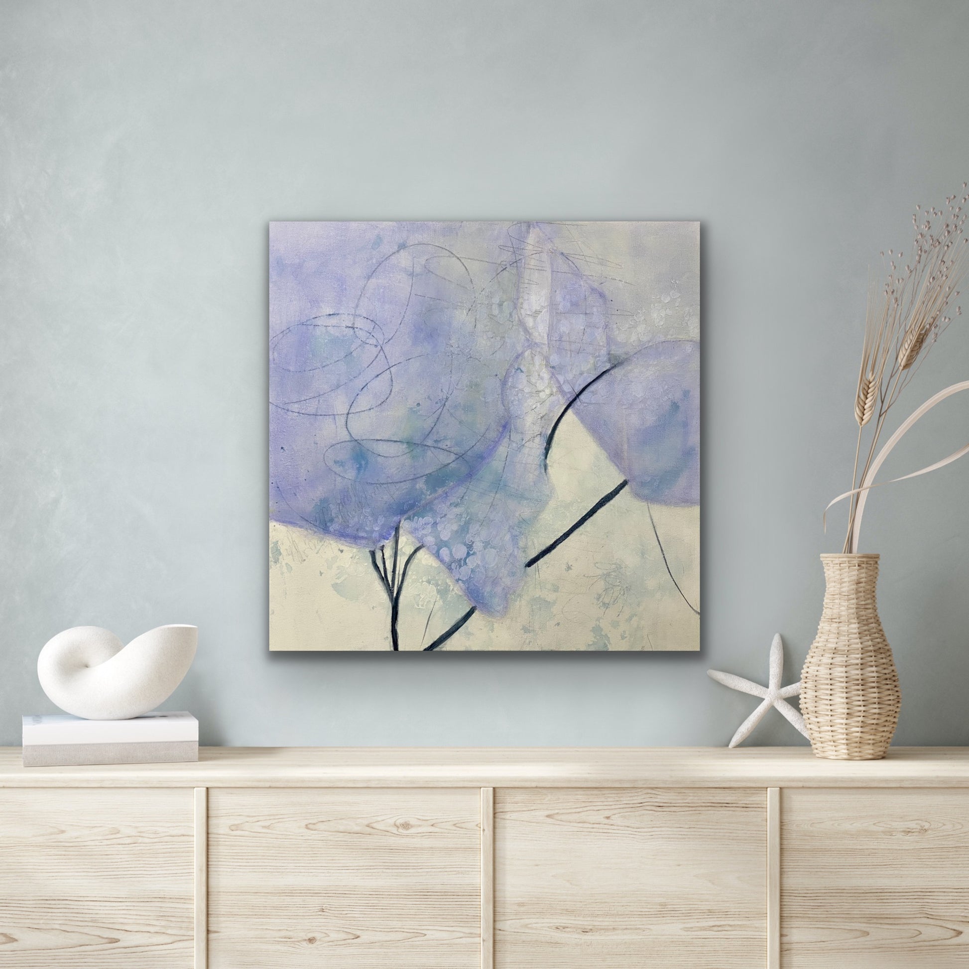 Something about this painting awes me.  The transparent periwinkle and the sparse branches make are heart melting. mesmerizing.  It's the impression of something but not really anything. A moment of awe that this painting brings to mind is the innocence of new life, starting anew, embracing possibility. Enjoy its awe energy. Words fail me.