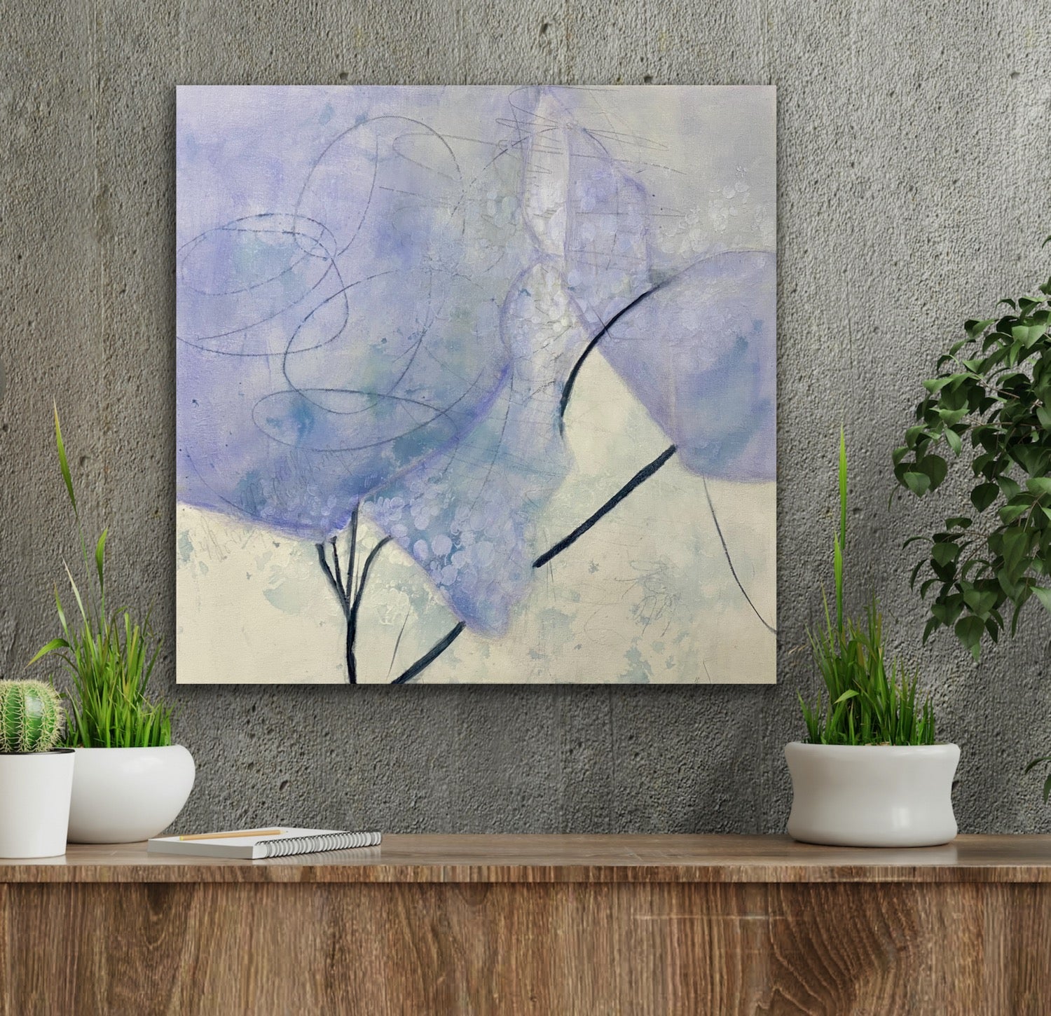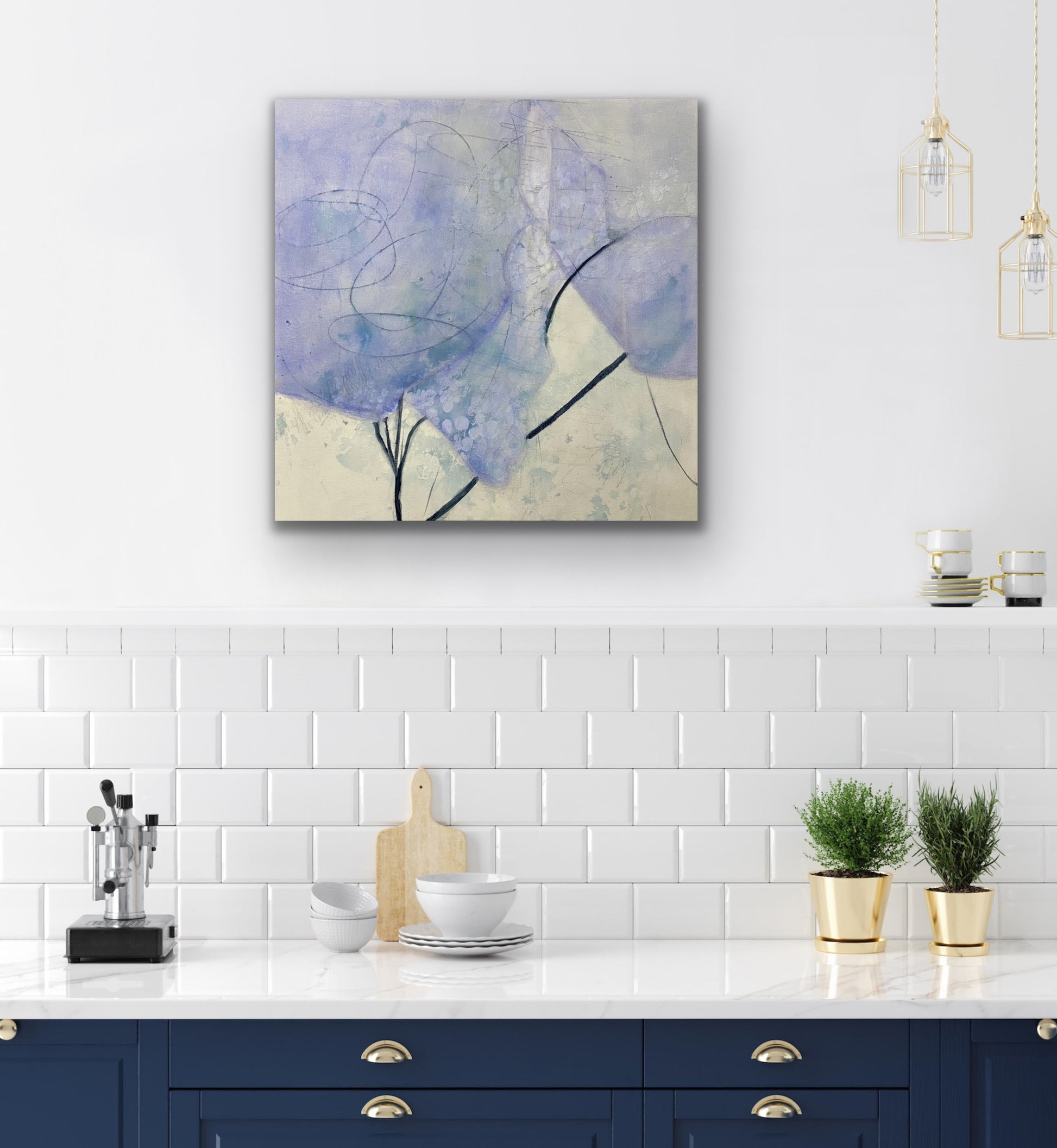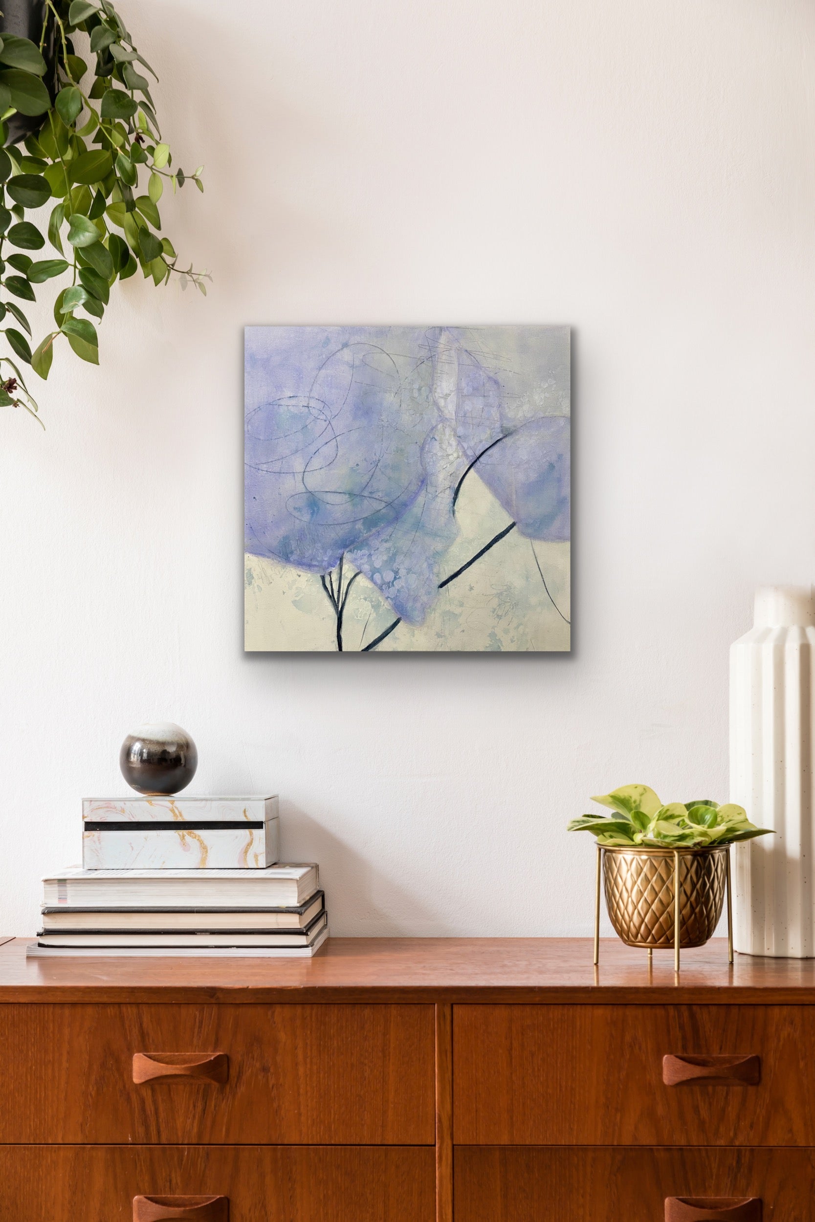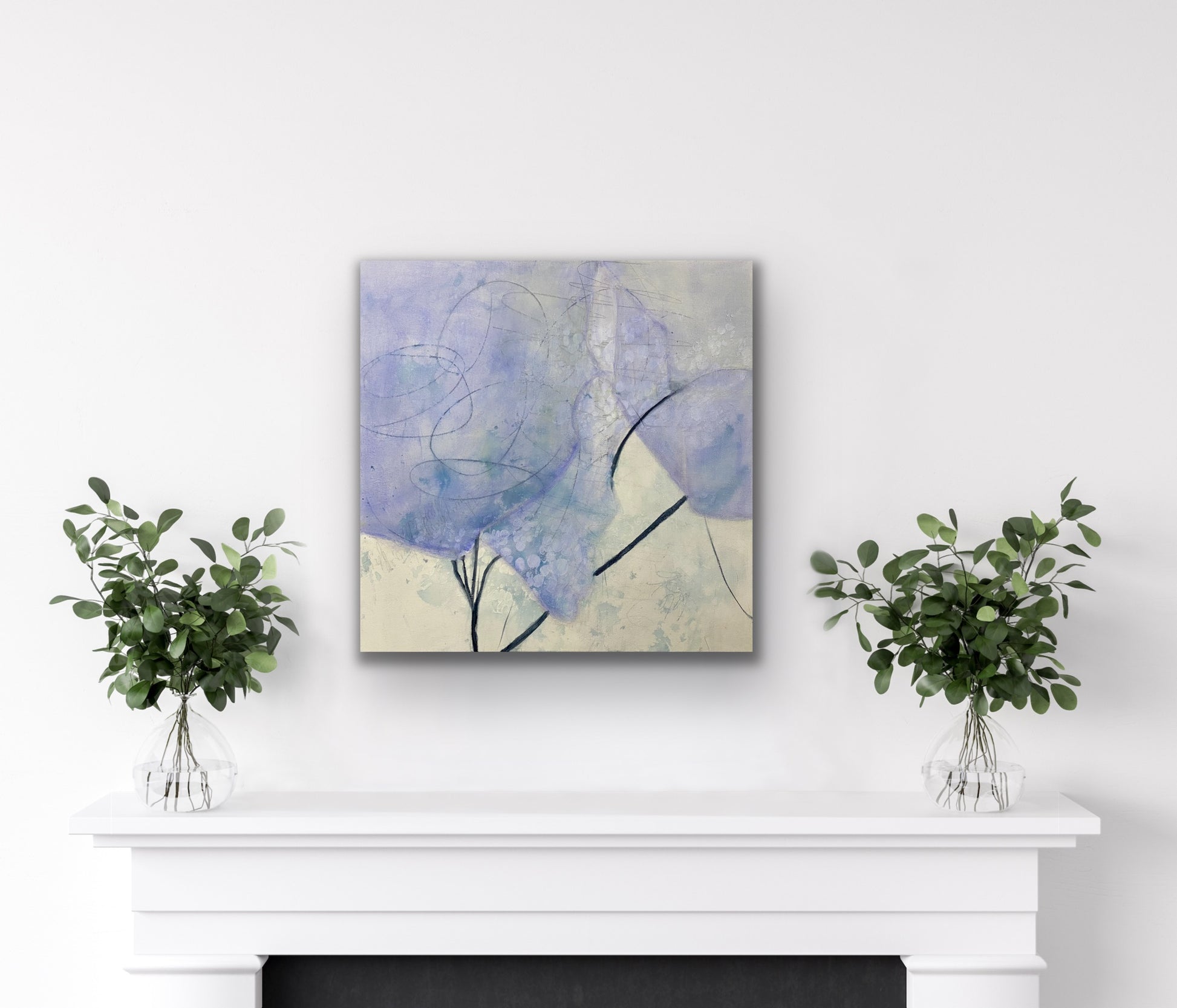 Something about this painting awes me.  The transparent periwinkle and the sparse branches make are heart melting. mesmerizing.  It's the impression of something but not really anything. A moment of awe that this painting brings to mind is the innocence of new life, starting anew, embracing possibility. Enjoy its awe energy. Words fail me.